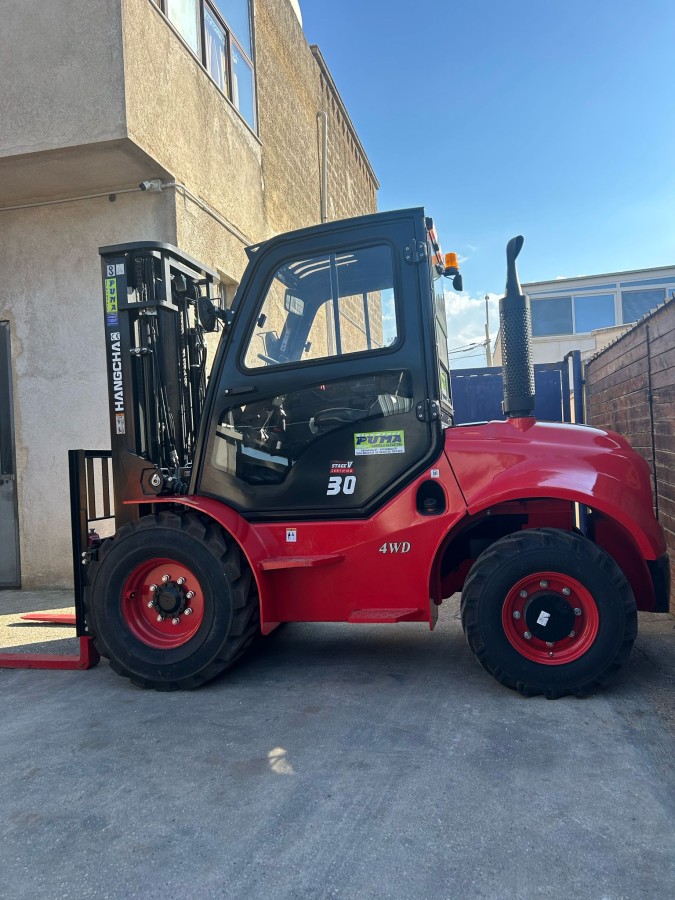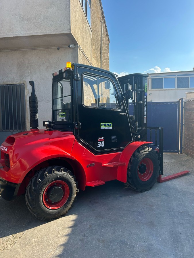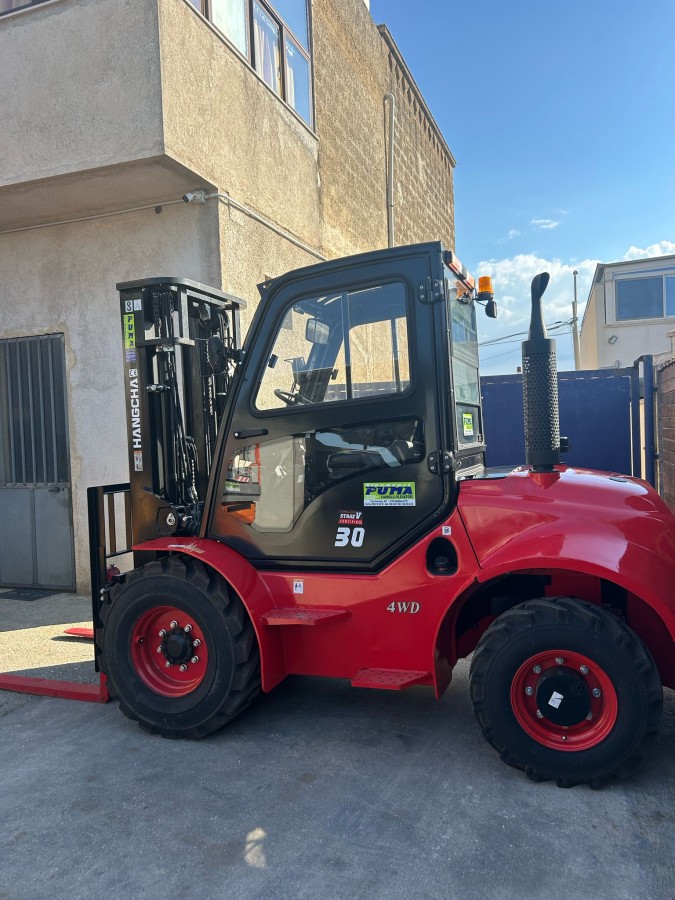 Portata 3.000 Kg - Montante Triplex 4500 mm - Ingombro montante chiuso 2265 mm - Alzata libera 1181 mm - Ingombro cabina 2420 mm - Ruote pneumatiche - 4 ruote motrici - Sedile ammortizzato con bracciolo, micro presenza e cinture di sicurezza – Cabina completa - Tettuccio di protezione sagomato - Vetro frontale e posteriore con tergi - Sportelli rigidi con finestrini scorrevoli - Riscaldamento - Traslatore CASCADE - Doppia idraulica addizionale 3 e 4 via - Motore KUBOTA V3607 - Stage V - Fari anteriori a LED - Luci retromarcia posteriori - Maniglia posteriore con clacson - Display multifunzione a colori - Scarico fumi alto - Doppio isolamento vano motore