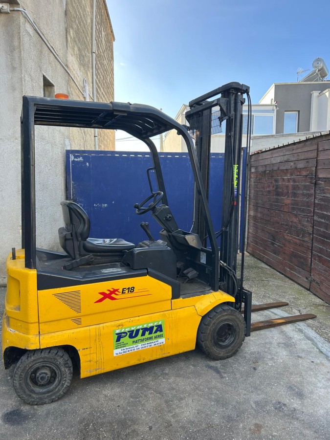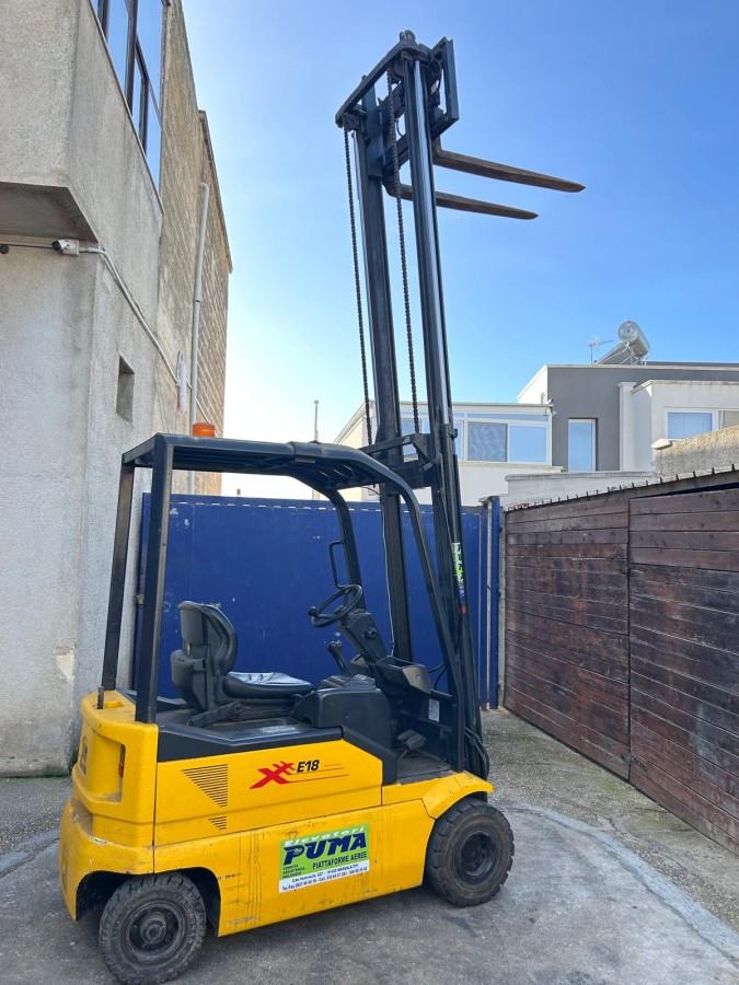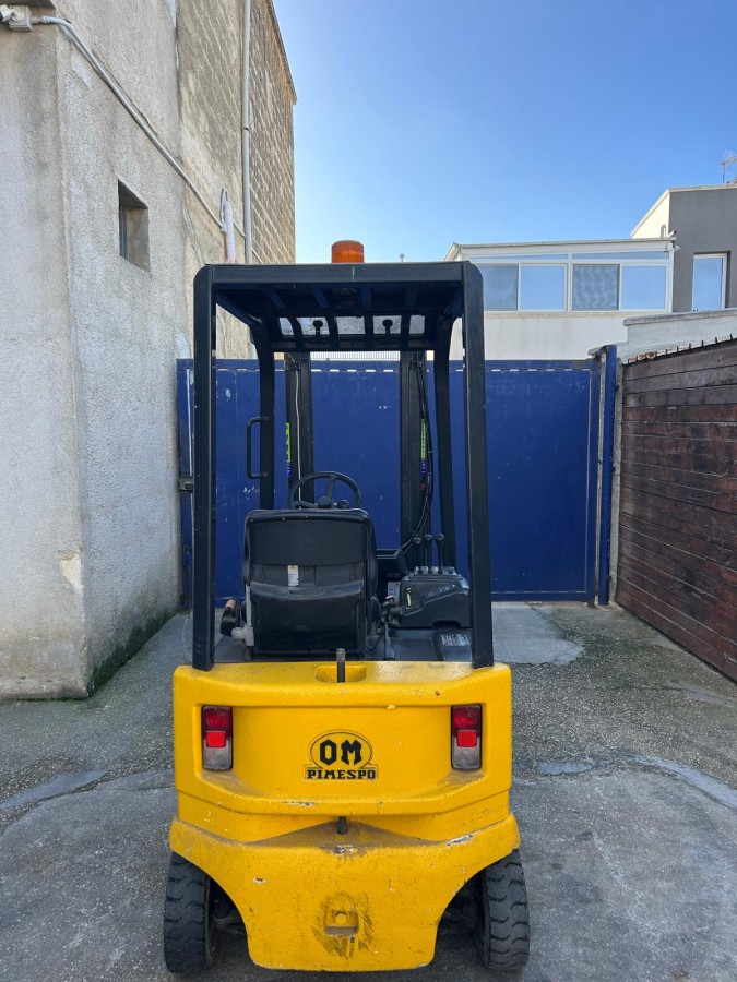 Carrello elevatore elettrico OM XE18, portata 1800 kg, montante simplex 3,60, gommatura superelastica, traslatore, III via idraulica