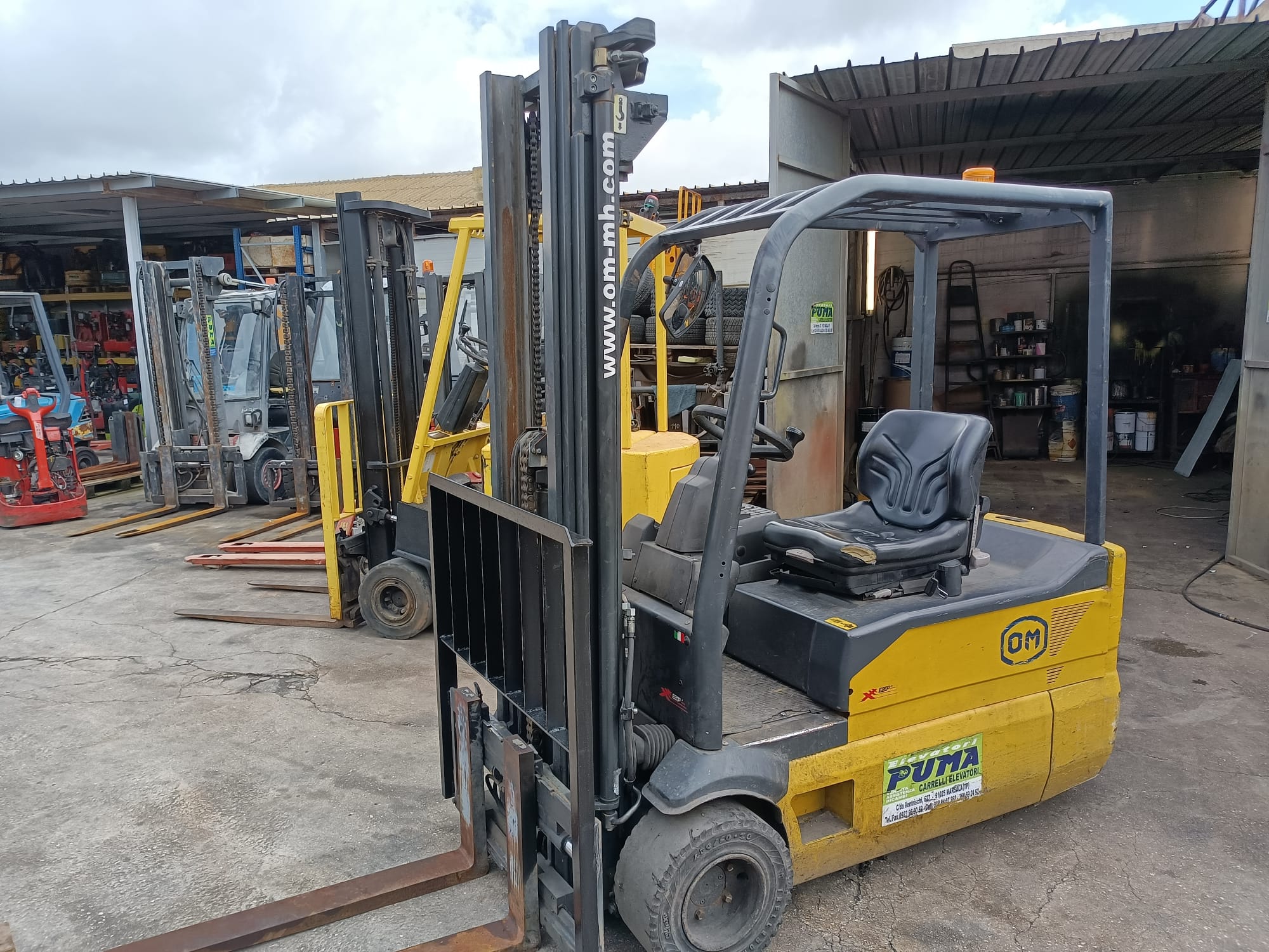 Carrello elevatore elettrico OM modello XE 20 3 AC anno 2012 portata 2000 kg 3 ruote montante duplex con alzata 4050 mm