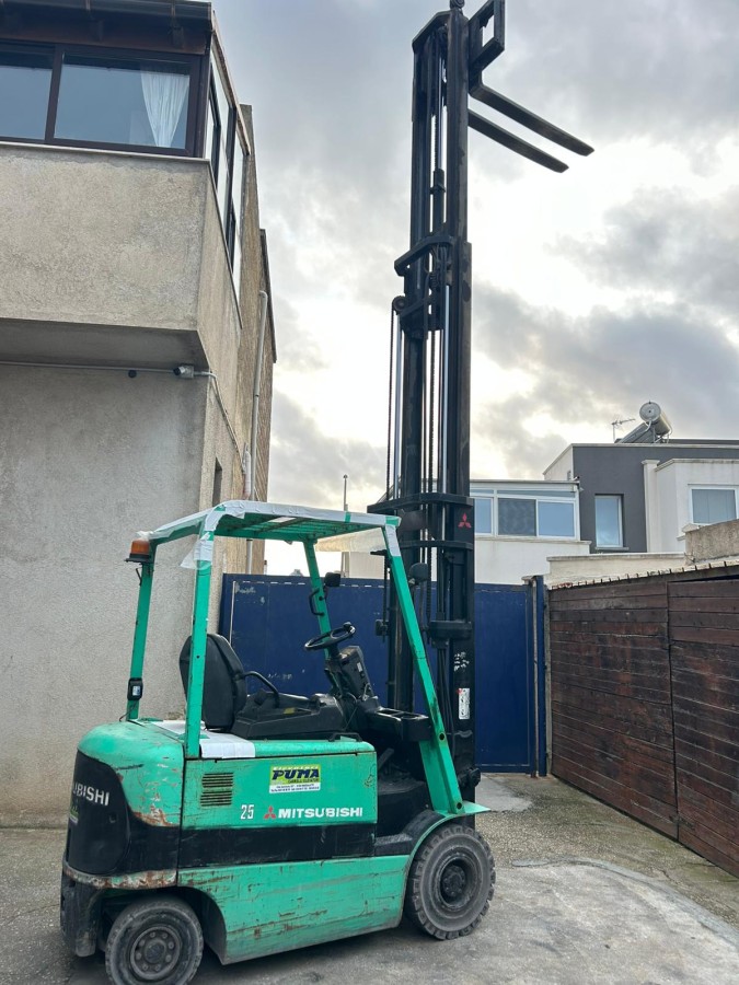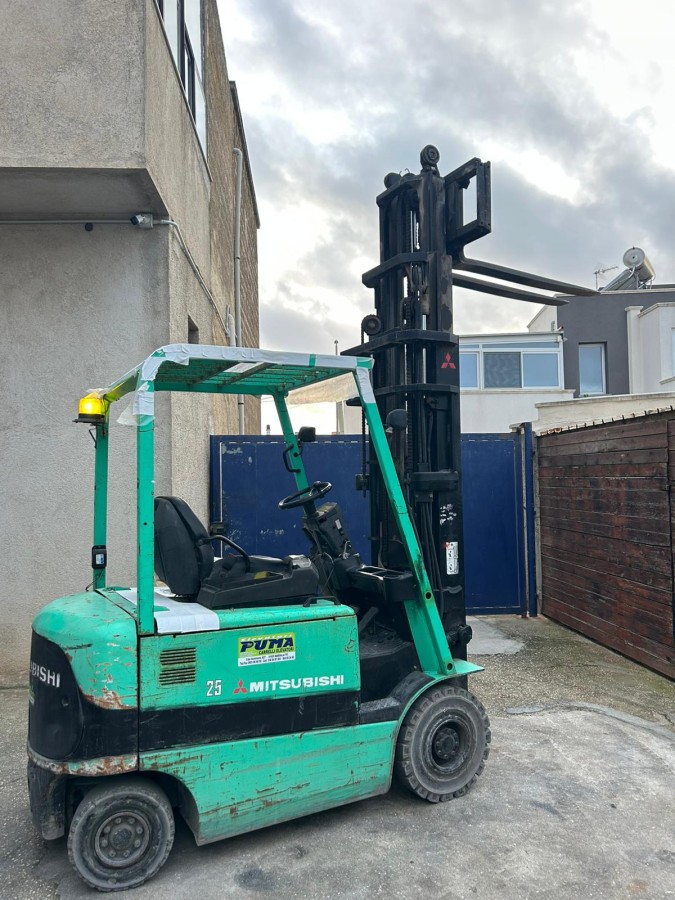 Carrello elevatore elettrico Mitsubishi FB25K-PAC, portata 2500, montante Triplex 5,50 - gommatura superelastica singola, traslatore, III° Via Idraulica - Batteria 80V nuova