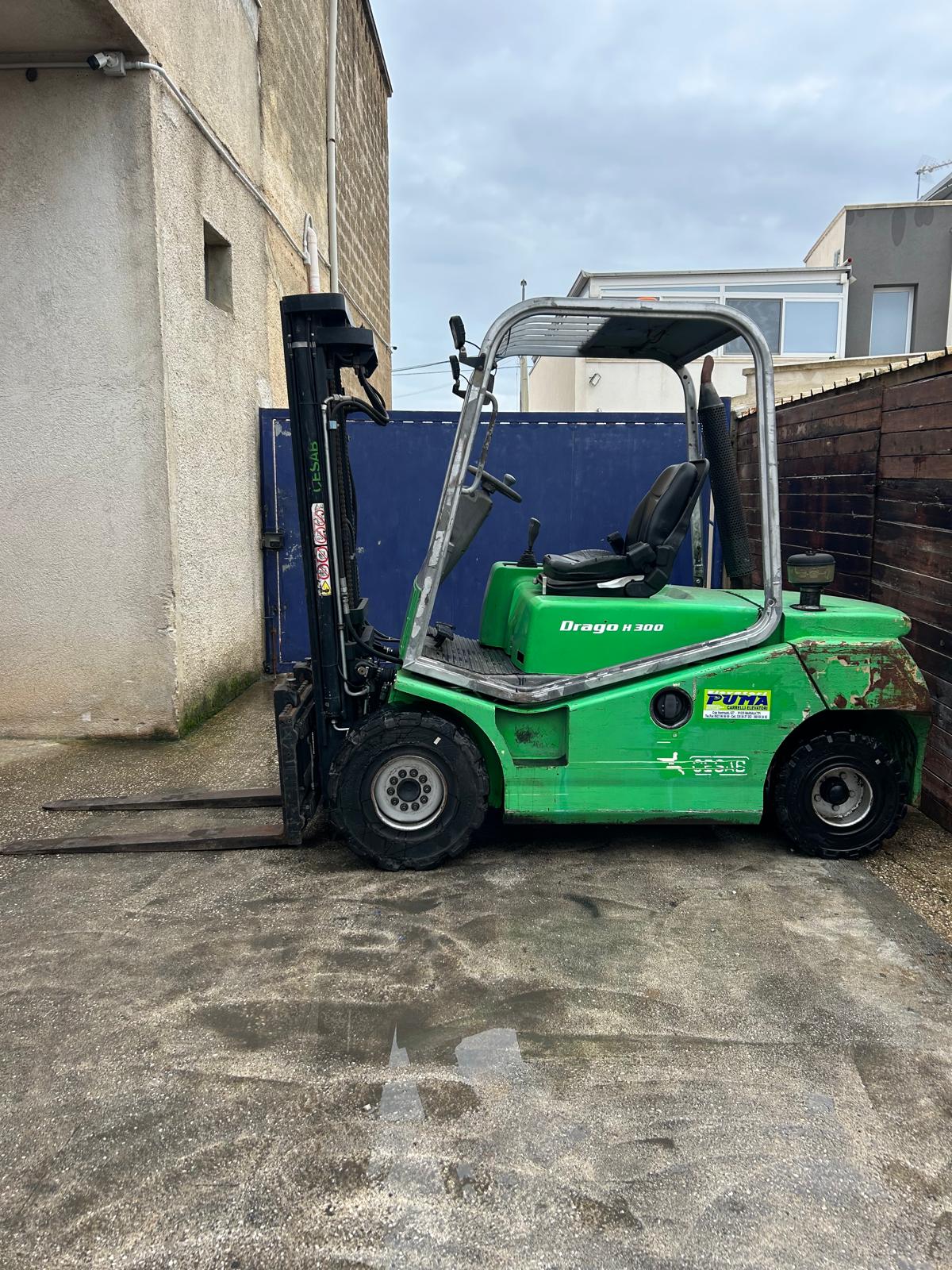 Altezza di sollevamento massima 4540 mm Traslatore integrato Forche 1200 mm 4 ruote Gomme anteriori: 27x10-12 Gomme posteriori: 6.50-10 Impianto idraulico IV via Comando idraulico: leve