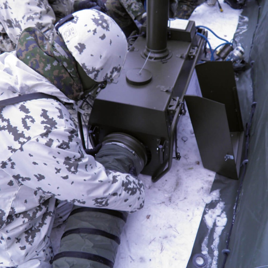 È in grado di funzionare a temperature fino a -40 °C Crea un ambiente di lavoro confortevole Apparecchiature e mezzi di trasporto come gli elicotteri rimangono caldi e pronti all'uso, limitando l'usura e garantendo tempi di risposta più rapidi Affidabili e praticamente esenti da manutenzione Facile da trasportare, anche su ghiaccio e neve Può essere impostata da una sola persona senza l'uso di strumenti ed è facile da azionare Sviluppata in collaborazione con le forze armate dei paesi NATO Scelte come standard NATO, conformi a tutti i requisiti e norme NATO Tutte le unità sono dotate di numeri unici di codificazione NATO (NSN) Ideale per il funzionamento ad aria aperta con aria di mandata e di ritorno canalizzata Presa d'aria fresca regolabile L'efficiente bruciatore multi-liquido accetta quasi tutti i combustibili diesel