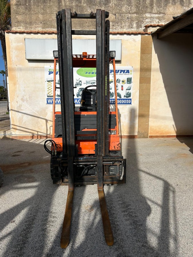 Traslatore laterale, 4° via idraulica, Gomme Nuove, trasmissione idrostatica con doppio pedale, semicabina in vetro di sicurezza, tergicristalli, sedile comfort con braccioli, cintura di sicurezza, fanaleria anteriore e posteriore, lampeggiante, allarme retromarcia, contaore, posizionatore forche idraulico.