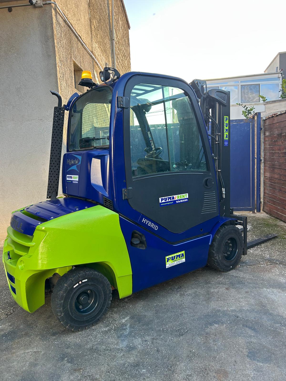 Carrello elevatore diesel marca Still modello RX70-35 anno 2016 portata 3500 kg, montante triplex 4500 mm, ingombro minimo chiuso 2200 mm, dotato di traslatore, impianto idraulico IV° via, minileve, joystick, cabina completa, luci anteriori e posteriori di lavoro, cicalino di retromarcia, lampeggiante, rovesciatore girevole 360°
