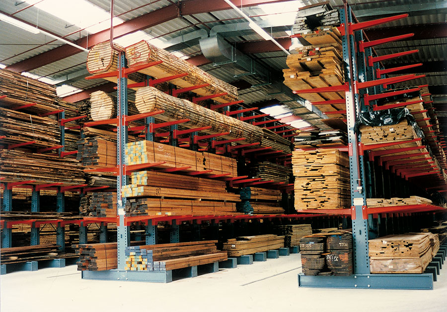 Cantilever, scaffalature metalliche a quattro elementi: colonna, braccio, spina, crociera.