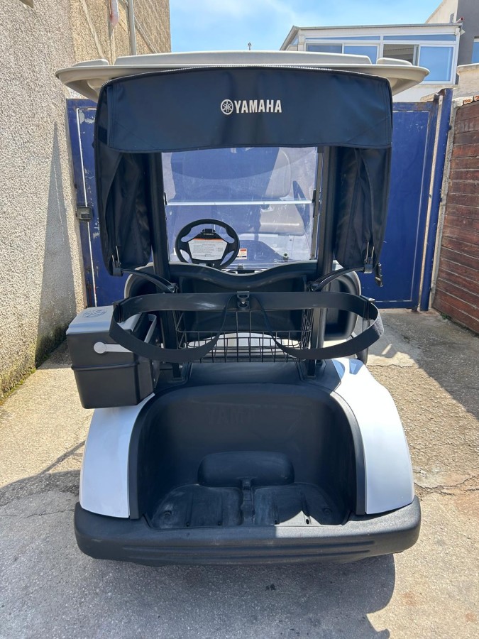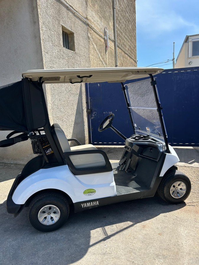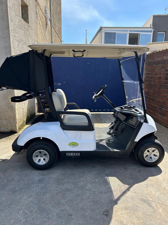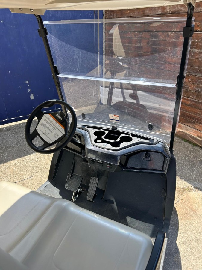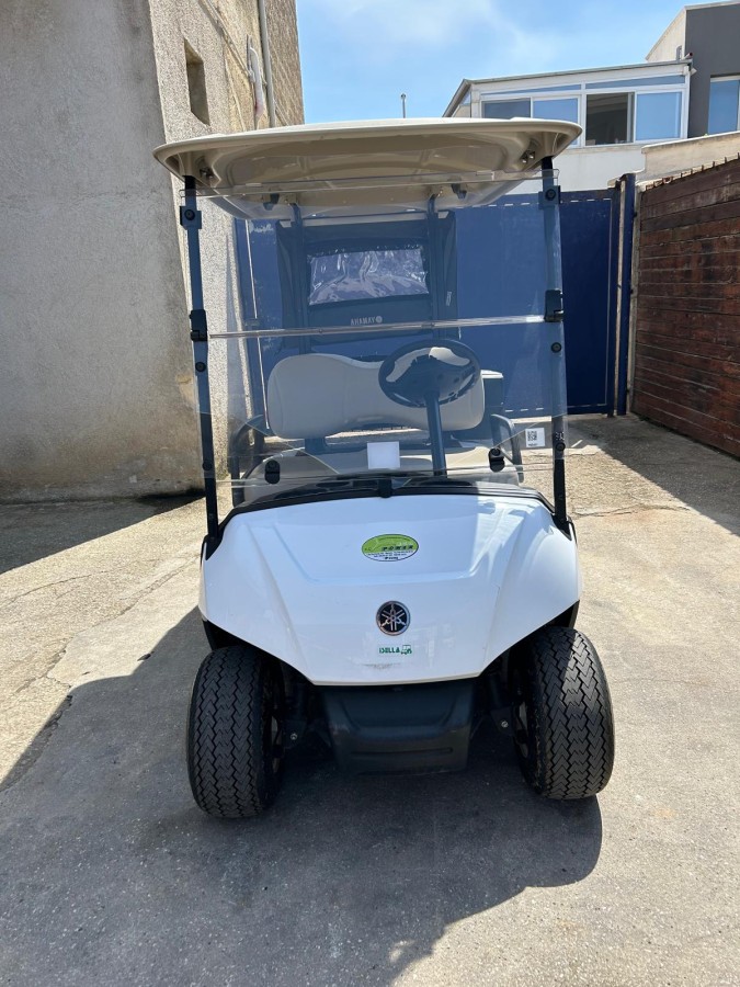 Golf car Yamaha DR2E30, anno 2019, 2 posti con telone, tettuccio, parabrezza in plexiglass, cicalino di retromarcia, alimentazione 48 V