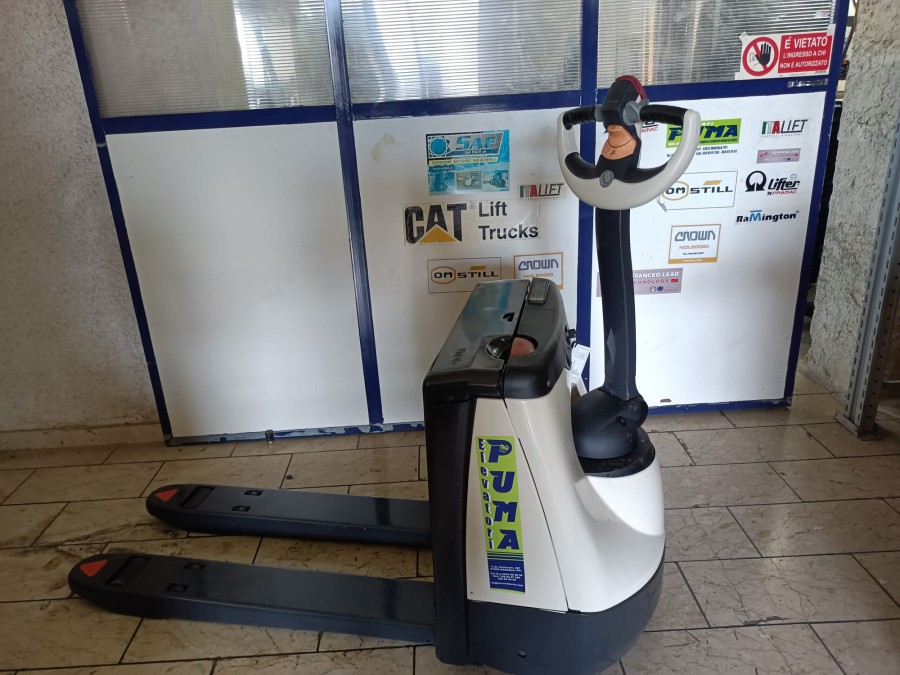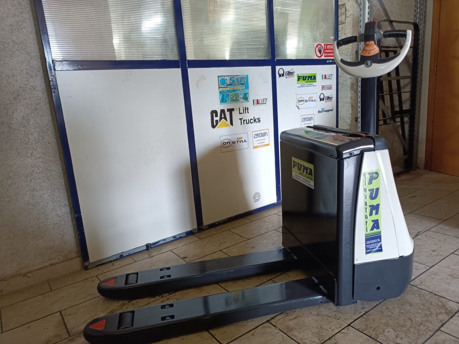 Elevatori Puma rivenditori carrelli e macchine da magazzino Crown Transpallet elettrico marca Crown modello WP2315 anno 2004 portata 1600 kg versione europallet, dimensioni forche 550x1150, monorullo, batteria 80%, carica batterie incorporato