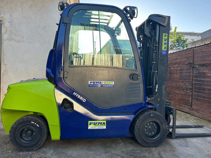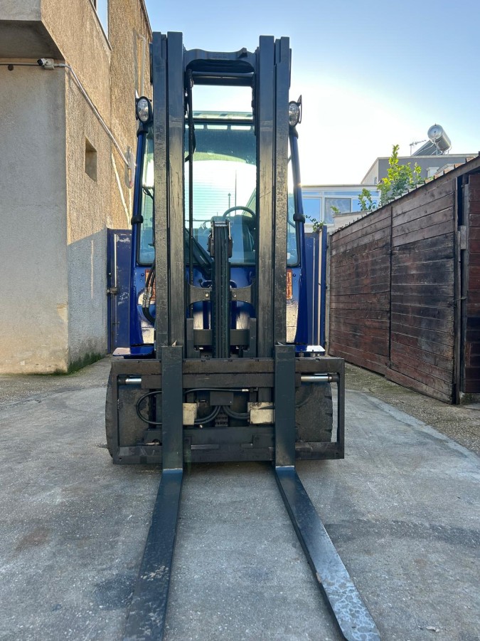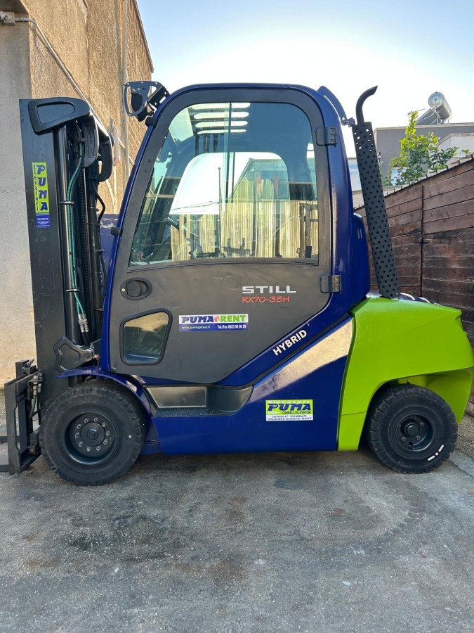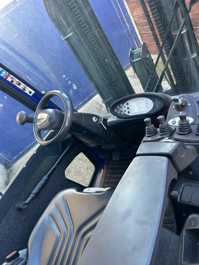 Carrello elevatore diesel marca Still modello RX70-35 anno 2016 portata 3500 kg, montante triplex 4500 mm, ingombro minimo chiuso 2200 mm, dotato di traslatore, impianto idraulico IV° via, minileve, joystick, cabina completa, luci anteriori e posteriori di lavoro, cicalino di retromarcia, lampeggiante, rovesciatore girevole 360°