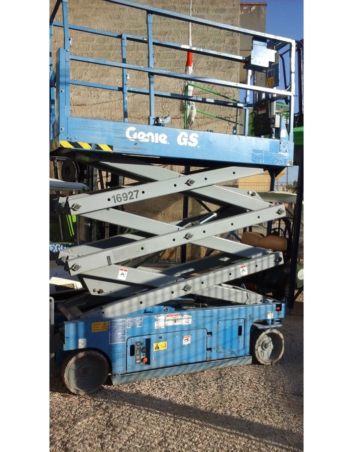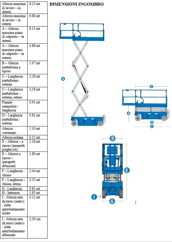 Piattaforma a pantografo Genie portata 363 kg, anno 2007, peso kg 1621, altezza uomo 6100 mm, altezza lavoro 8100 mm, larghezza mm 790, lunghezza mm 2260, altezza mm 2130