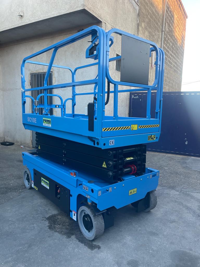 Piattaforma elettrica a pantografo Noblelift modello SC 10E, anno 2021, portata 450 kg, altezza uomo 8 m, altezza lavoro 10 m, pendenza superabile 25%, lunghezza 2.48 mt, larghezza 1.15 mt, altezza con ringhiere alzate 2.32 mt, altezza con ringhiere abbassate 1.78 mt, dimensioni piattaforma 2.27x1.12 mt, estensione piattaforma 0.9 mt