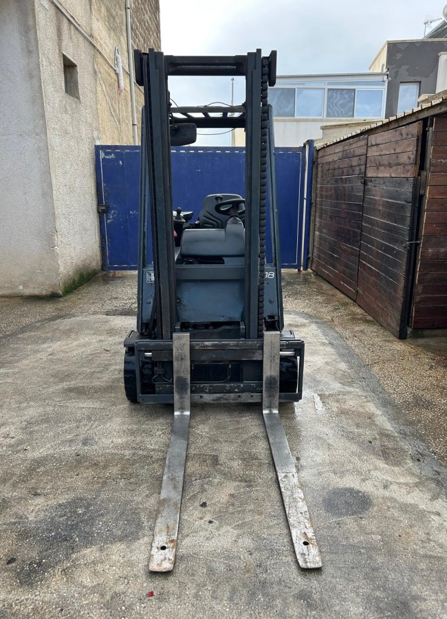 Altezza di sollevamento massima 3300 mm Traslatore integrato Forche 1200 mm Batteria 48 V Carica batteria 48V 120 Ah 3 ruote Gomme anteriori: 200/50-10 Gomme posteriori: 125/75-8 Impianto idraulico III via Comando idraulico joystick
