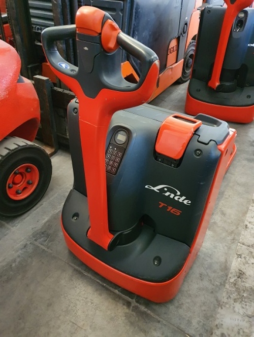 Transpallet elettrico Linde T16 anno 2014, portata 1600 kg, dimensioni forche 540x1150, rullo singolo, batteria 80%