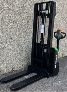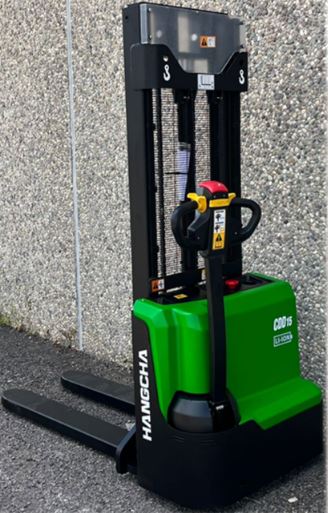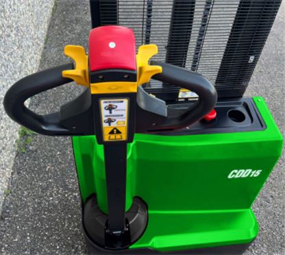 Stoccatore a Litio Hangcha modello CDD15-WS portata 1.500 kg, peso 570 kg, larghezza 820 mm, lunghezza 1710 mm, montante duplex 3300 mm, ingombro montante chiuso 2130 mm, doppio rullo, ruota trazione in poliuretano, alzata libera 90 mm, lunghezza forche 570*1150 mm, pulsante di emergenza, indicatore della batteria multifunzione, clacson, copertura montante antischiacciamento, motore trazione 0,75 kW, motore sollevamento 2,2 kW, batteria a litio 24V/ 60 Ah, caricabatteria integrato