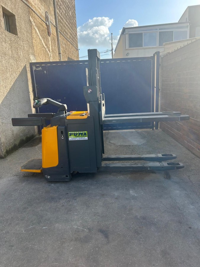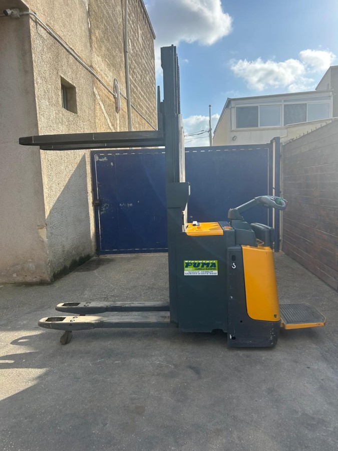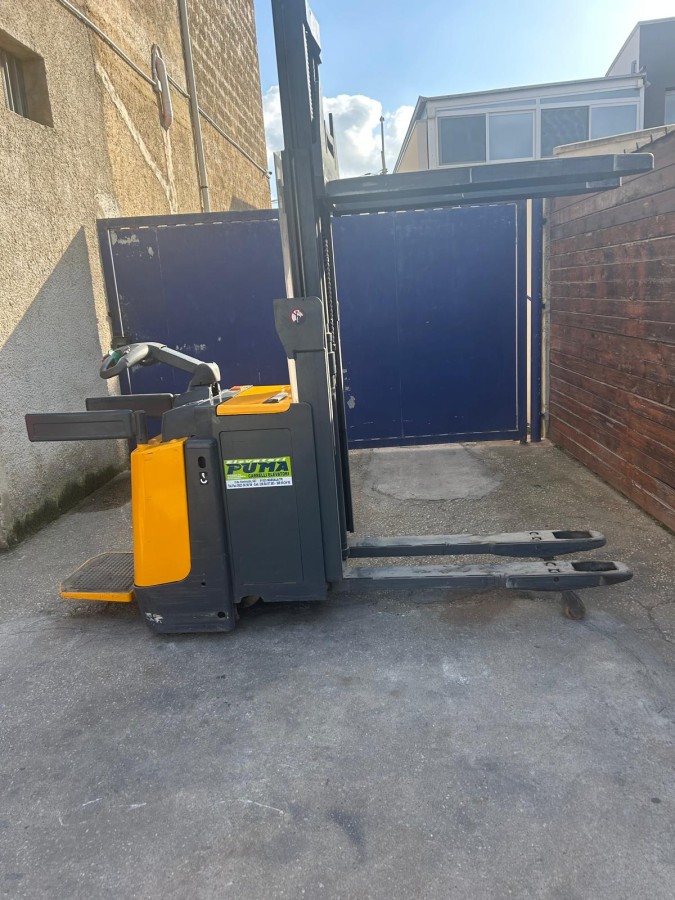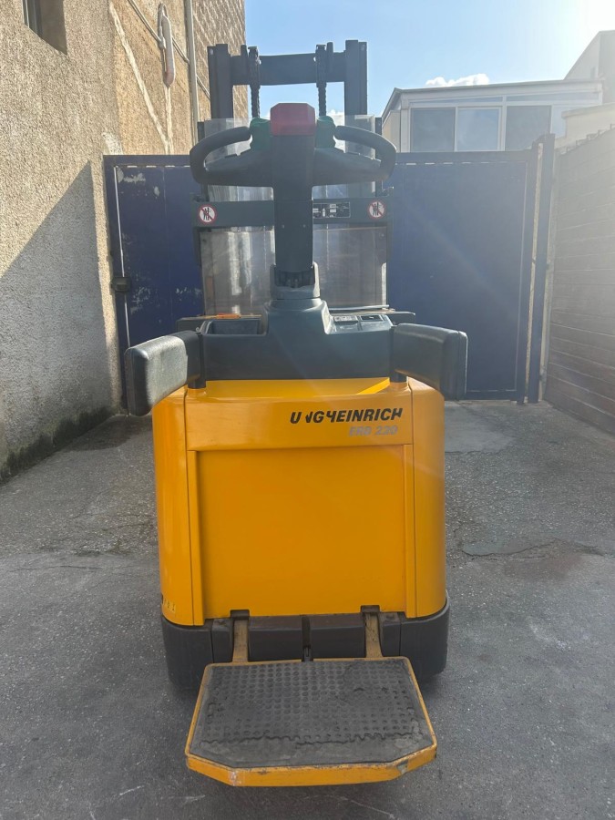 Transpallet elettrico a colonna Jungheinrich mod. ERD220, montante duplex 2,5, rullo singolo, doppio sollevamento, con pedana e braccioli