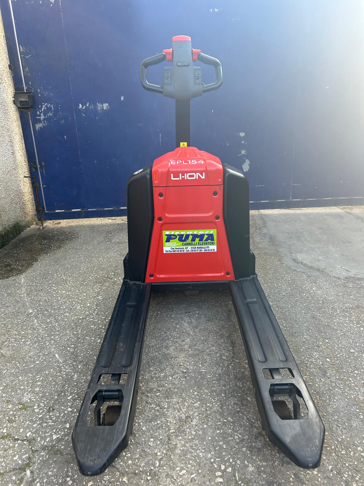 Transpallet elettrico marca EP modello EPL154 portata 1.500 kg, anno 2023, forche 1000x685 mm, versione ortofrutta, birullo, batteria 24V /30Ah a litio, carica batteria integrato
